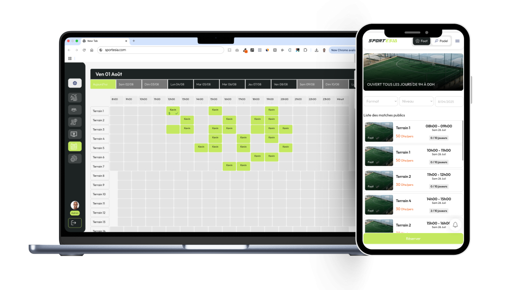 Whether on mobile, tablet, or desktop — Sportesia works everywhere. You and your team stay in control, even on the go.